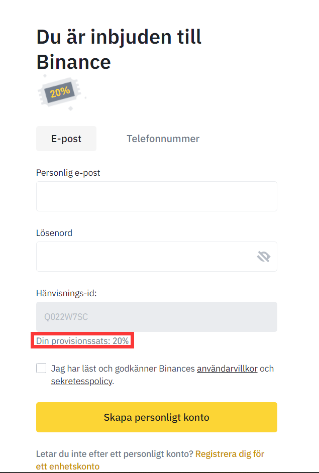 Não se esqueça de introduzir este código de convite, caso contrário não poderá obter uma percentagem de 20% de cashback.