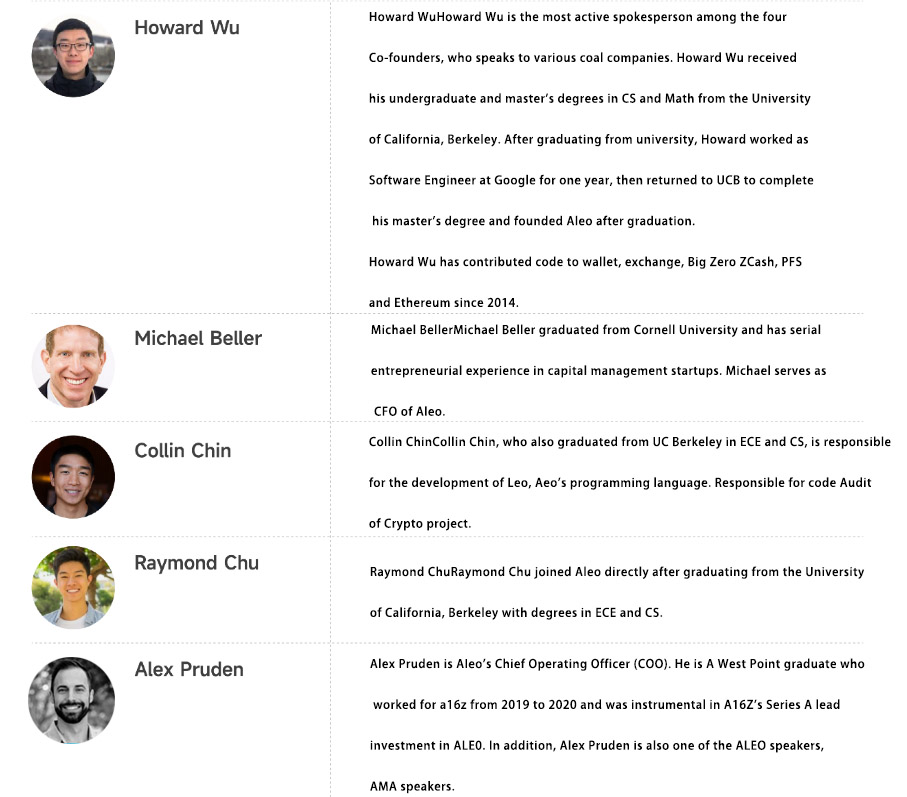 The Aleo team is composed of world-class cryptographers, engineers, designers and operators from companies such as Google, Amazon and Facebook, as well as research universities such as UC Berkeley, Johns Hopkins, NYU and Cornell .