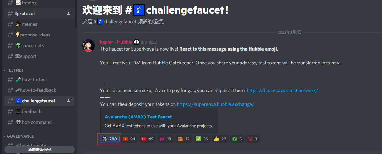加入官方discord社区,来到#🚰challengefaucet频道点击表情(请提前开启隐私设置,允许私聊)