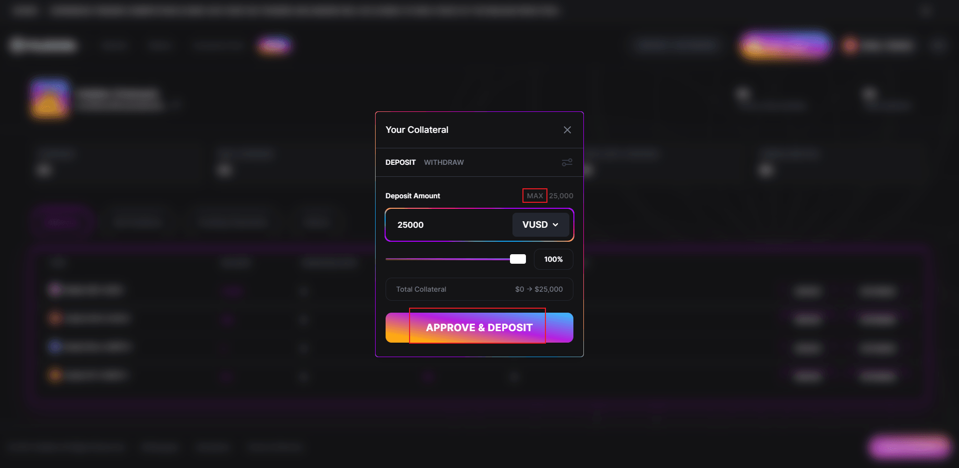 在弹出的框中输入最大值,然后点击APPROVE & DEPOSIT,然后在钱包中授权两次