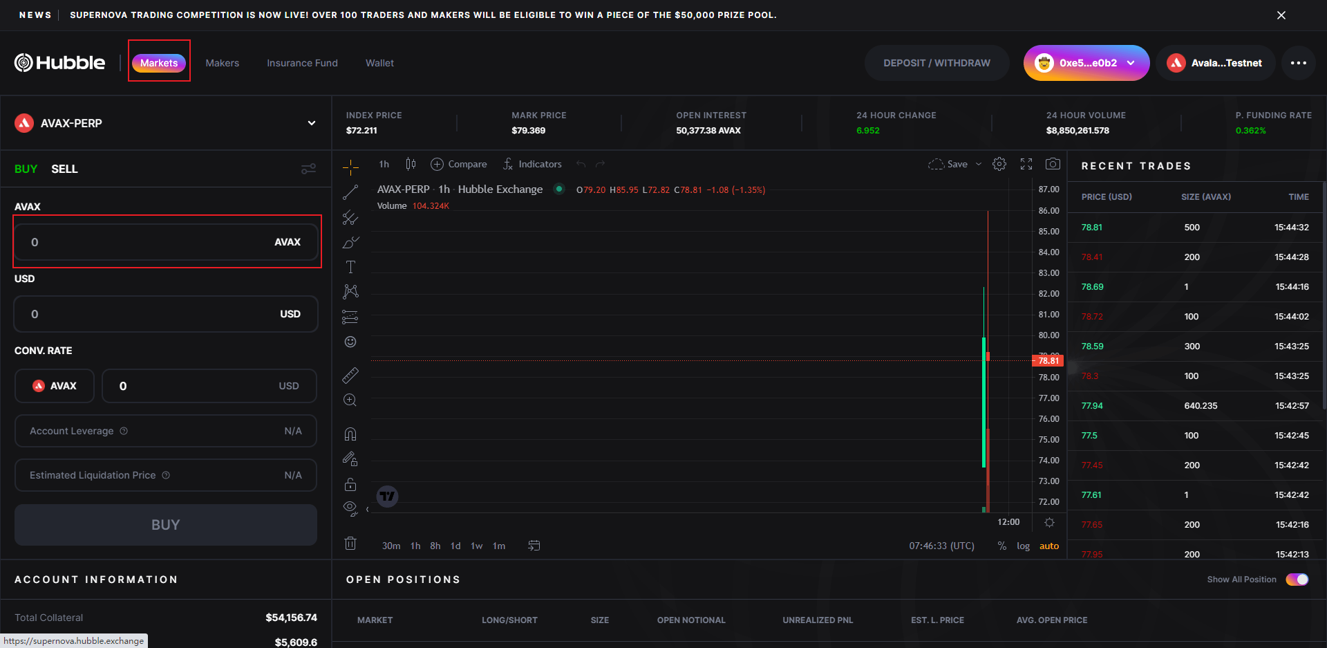 目前AVAX-PERP交易对已经可以交易了,下面开始测试交易。