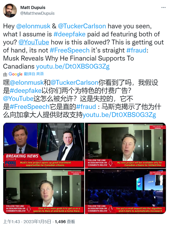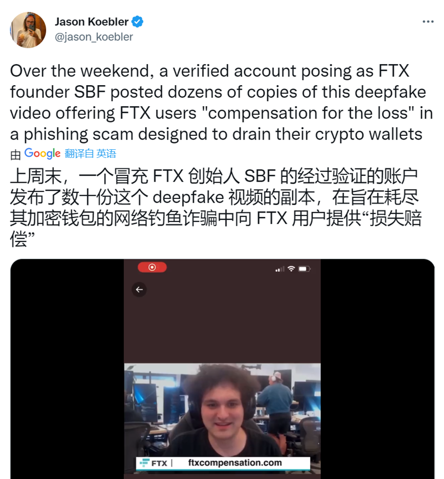 此类骗局的一个例子是11 月 FTX前首席执行官的深度伪造视频,其中骗子使用Sam Bankman-Fried 的旧采访录像和语音模拟器将用户引导至一个承诺“将您的加密货币加倍”的恶意网站。