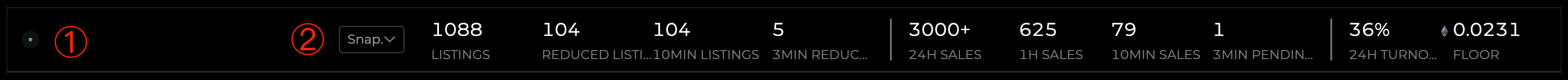 如果该项目很火爆,在listing顶部会出现2个数据提示:一个是1分钟内 xx 挂单,这个代表出售欲望比较强烈,一个是1分钟内 xx pending 这个代表购买情绪很强烈,fomo情绪强烈,如果成交速度很快,每分钟超过10单,也会在Sales列表的上方显示1分钟的成交数据,这同样代表购买情绪比较强
