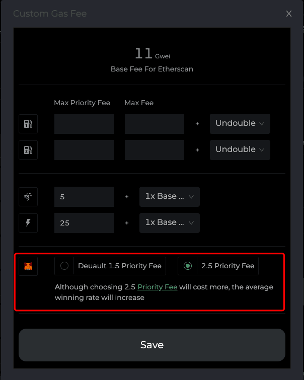 增加小狐狸默认Prio2.5选项(多一点点小费,会提高平均成功率)