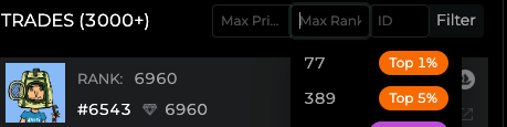 5,筛选区域,可按照最高价格,最高rank,或tokenid进行筛选