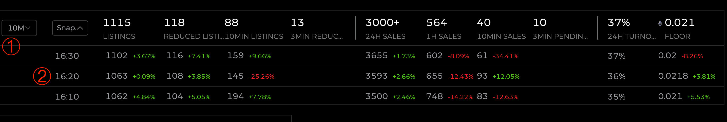 1,可选择不同时间周期的快照,包含5分钟,10分钟,30分钟,1小时,4小时,1天