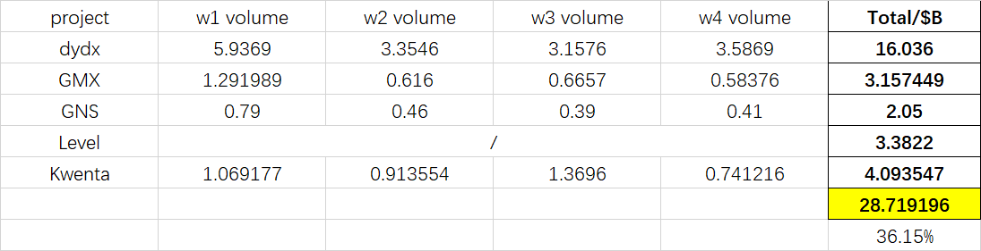 Perp:DYDX,GMX,GNS,LEVEL,Kwenta