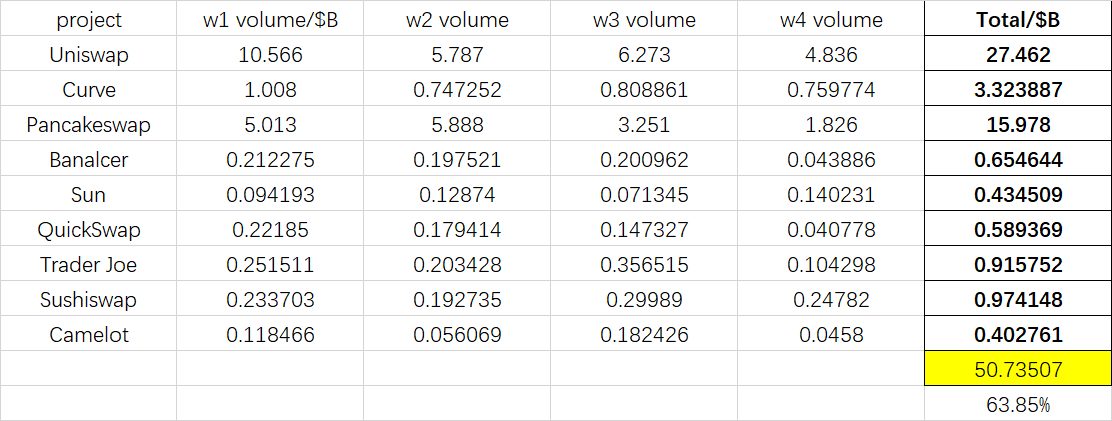 现货:Uniswap,Curve,Pancakeswap,Balancer,Sun,Quickswap,Trader Joe,SushiSwap,Camelot