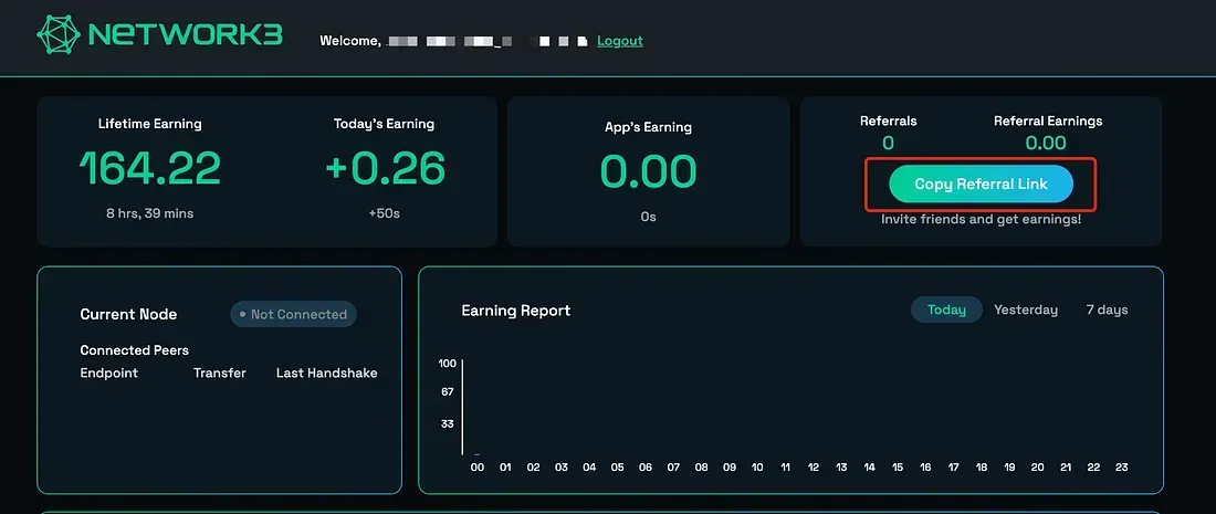 Bạn có thể mời người dùng mới tham gia nền tảng bằng cách nhấn "Copy Referral Link" trên bảng điều khiển của mình để chia sẻ liên kết giới thiệu duy nhất với bạn bè hoặc các liên hệ. Khi người dùng mới đăng ký qua liên kết hoặc mã giới thiệu, đó sẽ được tính là một giới thiệu thành công.