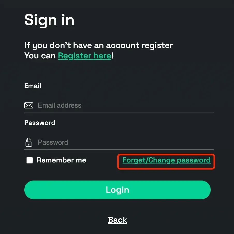 Nếu bạn quên mật khẩu, hãy truy cập trang đăng nhập và nhấp vào tùy chọn "Forget/Change password".