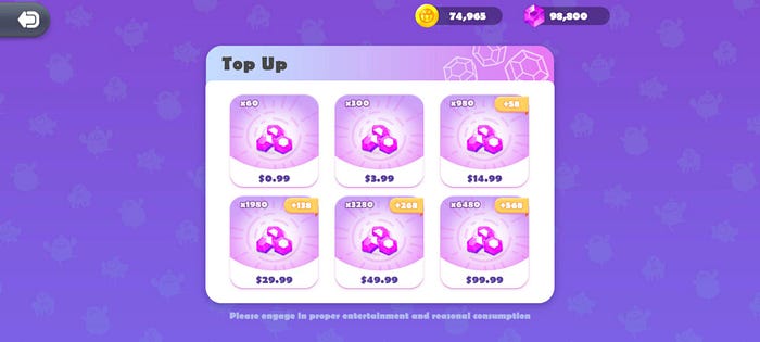 Top-up $0.99 before 12 PM (Noon), Sept 8, UTC to get an additional $0.99 USD worth of Diamond, which is 60 Purple Diamonds as rewards