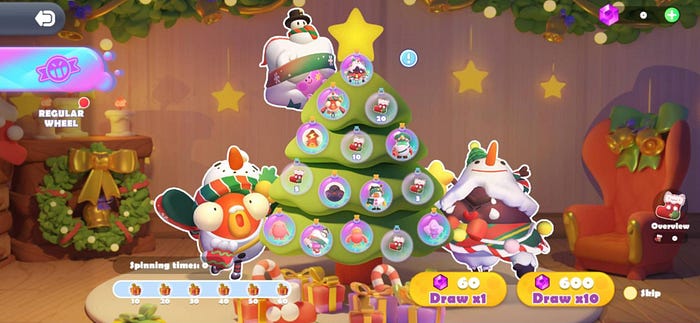 More surprise for this, after reaching a certain number of spinning times, a delightful surprise awaits under the majestic Christmas tree — the rewards of more Christmas Stockings! Of course, if you are lucky enough, getting your hands on the coveted Christmas suits will be a dream come true with simple spins.