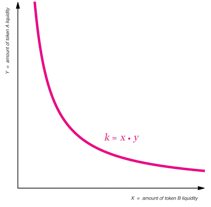 Như vậy, bạn đưa vào trong pool x đồng A và y đồng B. Khi có các giao dịch của trade với pool của bạn, số lượng x và y sẽ thay đổi, nhưng vẫn đảm bảo tích của x*y vẫn bằng hằng số k bên trên. Bên cạnh đó, bạn còn có thể thu được 0.3% phí trên mỗi giao dịch.