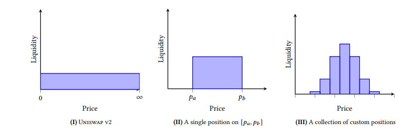 Do đó, ace có thể chuyển việc setup range giá từ (0,∞) với Uni V2 thành range giá từ [Pa,Pb] với Uni V3. Điều đó khiến cho thanh khoản được tập trung hơn vào khoảng [Pa,Pb] và giúp cho liquidity provider như chúng ta có thể kiếm được nhiều trading fee hơn so với cùng một lượng vốn, như mô tả dưới đây: