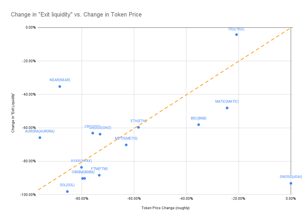 Keeping in mind that when we say Exit liquidity we mean the amount required to cause 50% slippage in a spot trade, and that correlation is not causation.