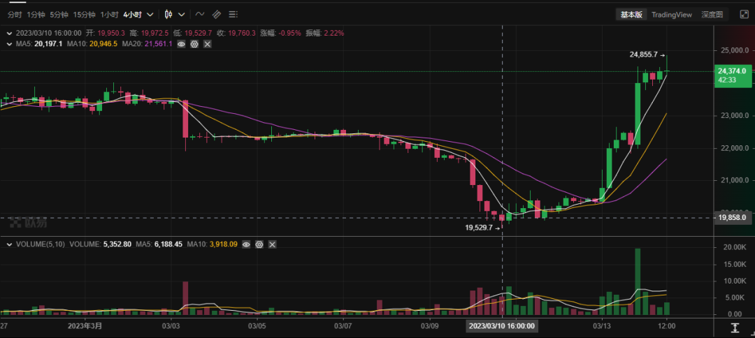前几天SVB时间导致的整个圈子的出现了大幅震荡、冰糖橙在2.2W这个位置直接暴跌一路跌破2W。当时整体情绪还是比较差的、再加上usdc脱锚整体还是比较差的。但是我自己考虑到usdc不太可能出现之前UST的这种归0的可能性、再加上周末银行还没有开门、所以周一肯定会有机构来救市。所以我就在当天大概买入了现货。也算自己的一次操作比较成功的一次、目前整体涨幅超过20%。