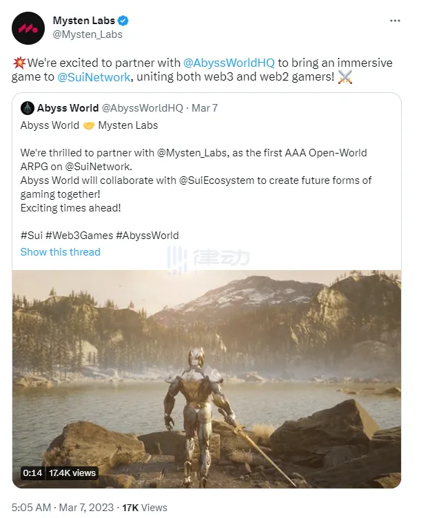 Abyss World是一款基于Sui Layer 1区块链的动作角色扮演游戏(并且项目获得AMD和Epic Games支持),拥有强大的web3技术和游戏体验,是一款跨链游戏。玩家可以在游戏中探索PVE世界,寻找宝藏,击败怪物获得装备和游戏内货币,并锻造出更好的武器和装备,组建更强的英雄队伍。此外,玩家还可以参加PVP竞技场的战斗,与其他玩家竞争,而这些英雄将由AI算法控制。Metagame Industries是Abyss World的创始团队,致力于利用区块链、人工智能和云游戏来构建下一代元游戏。为了缓解休闲玩家和专业玩家在整个游戏生态中的战力失衡,Abyss World让两类玩家在经济上相互依赖。休闲玩家每天完成PVE任务以换取游戏内代币,而竞技玩家使用这些代币升级他们的装备或为竞技项目建立新的阵容。Abyss World选择创造一个市场,让休闲玩家在游戏中创造的价值可以转移到专业玩家。该游戏计划于2023年第三季度推出公测版,并计划在一年内向PlayStation平台和PC平台发布正式版游戏。