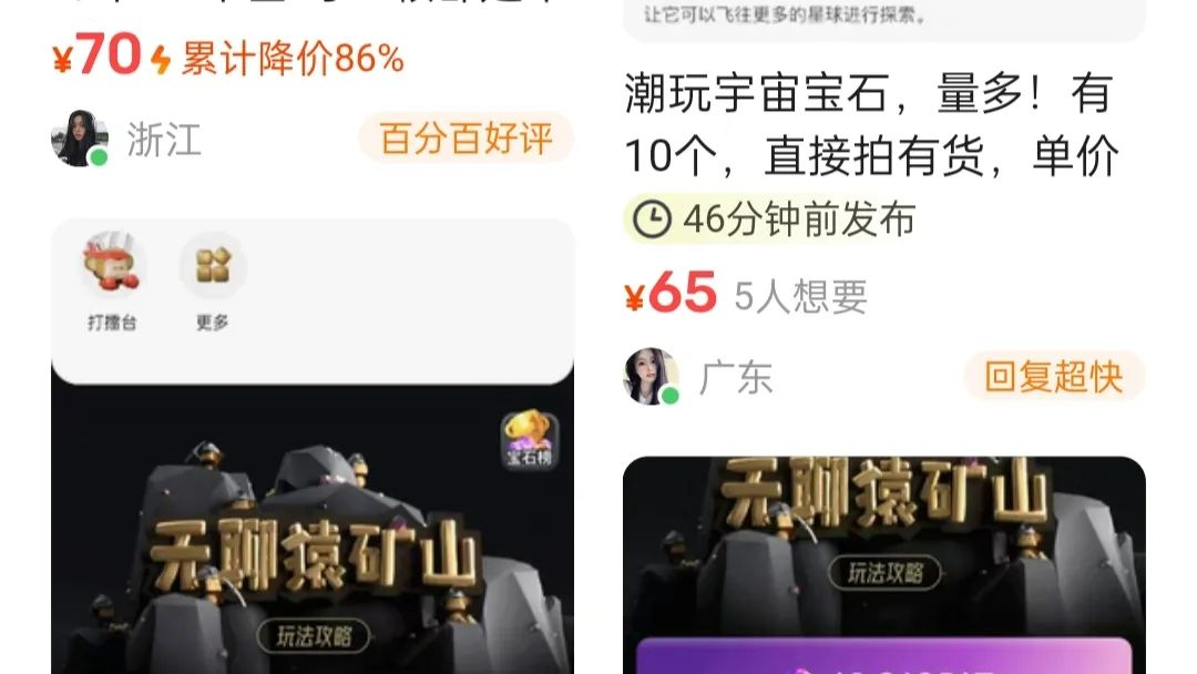 卖宝石:【可以自己去闲鱼卖,定价在6元左右很容易成交,如果嫌麻烦直接找我就可以,按市场价回收】