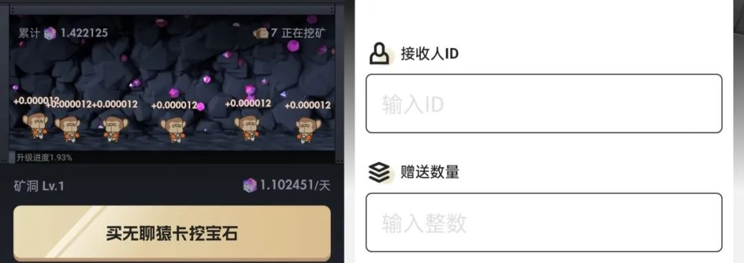 【买猴子】→【猴子自动为你挖宝石】→【宝石可卖给别人】→【实现收益】
