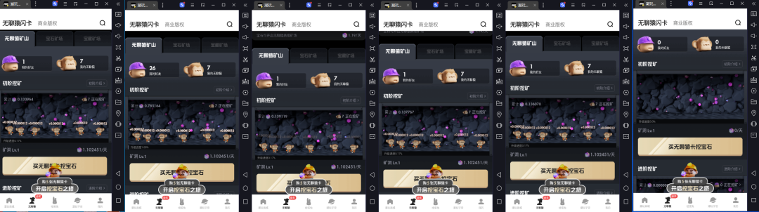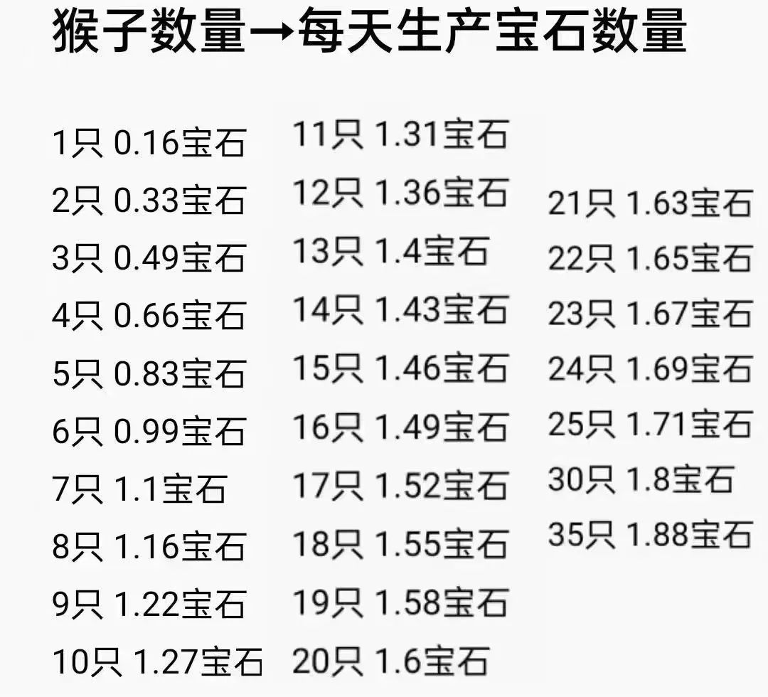 所以不难理解,我们的玩法就是投入147元去买7只猴子,这样买是最划算的玩法,每天1.1宝石,一个月33颗,一颗6块左右,并且这些猴子可以永久帮你挖宝石。