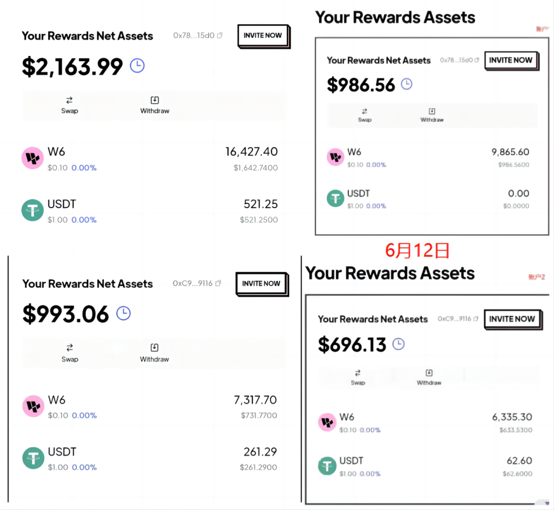 左边是7月5号的、右边是6月12号的收益、明显可以看到我目前账号的收益还是缓慢稳定的增长。其中目前可以提现的总金额为782u、加上最开始体现的500u左右总共可以拿回收益1300u左右。