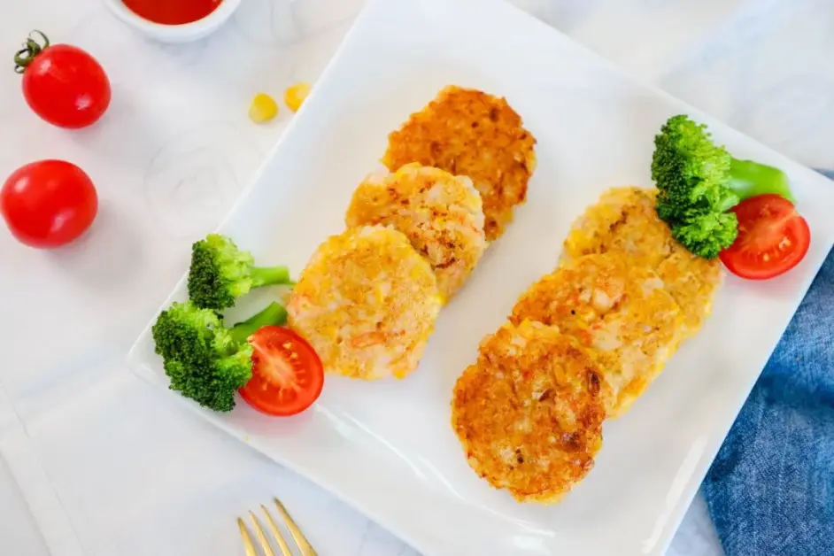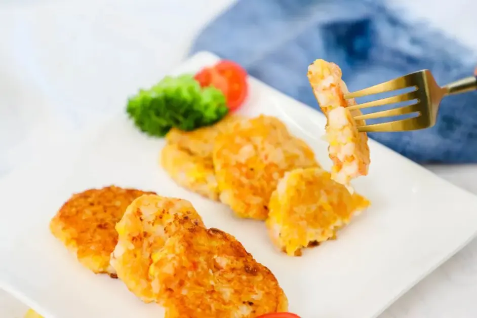 step 6最后盛出摆盘,一道香喷喷的鲜虾玉米饼就做好啦~既能做主菜又能做零食,这样的快手美味餐,还不动手试试吗~