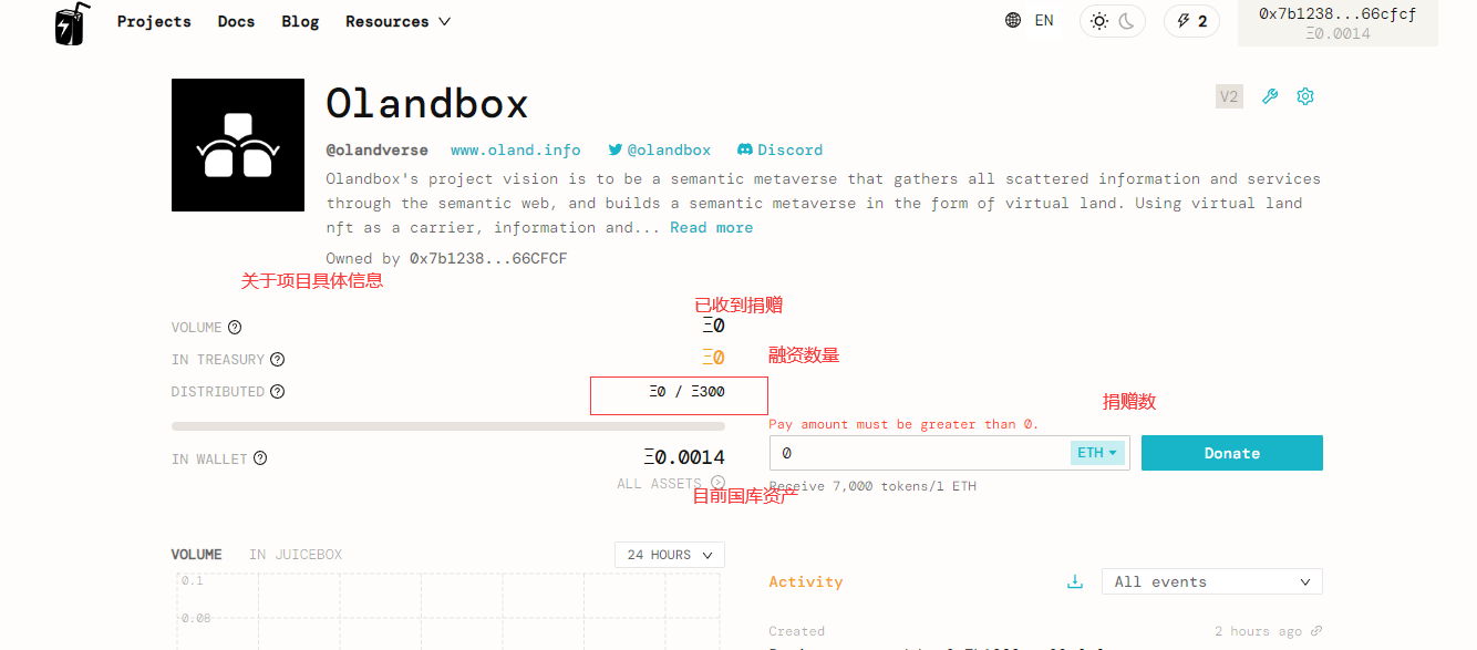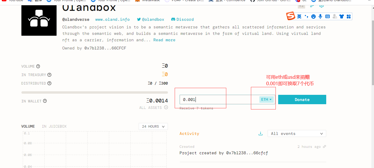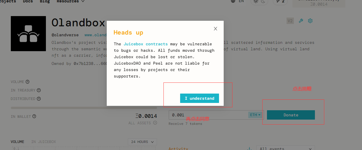 或者直接点击olandboixJuicebox捐赠链接,进入juicebox网页,选择钱包登录