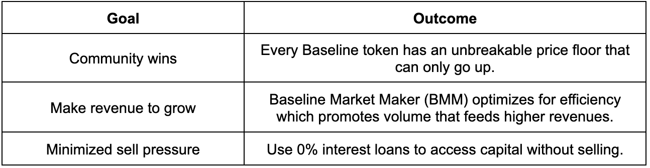 Where others fall short, Baseline thrives because it is built with a different set of goals in mind. Instead of just getting a token to market, Baseline efficiently manages capital to sustainably grow the token over the long run.