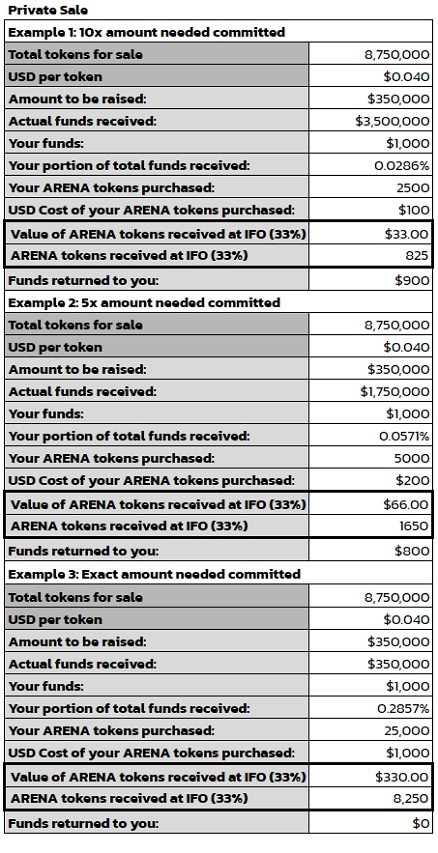 Цена за токен: 1 ARENA = 0,04 доллара США.