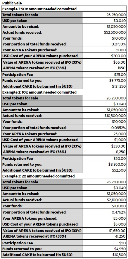 Весь CAKE, полученный от продажи токенов ARENA, будет передан проекту IFO.