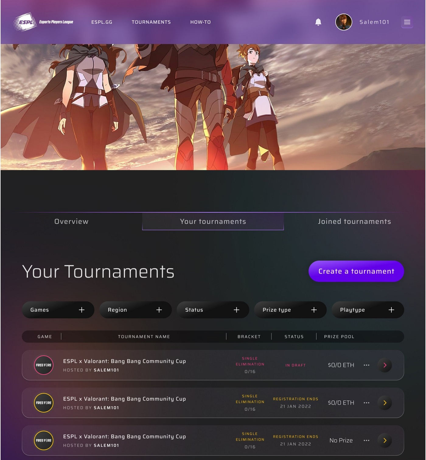 Арена Esports Players League (ESPL) — это платформа, на которой проводятся глобальные киберспортивные турниры и координируются различные аспекты, такие как настройка параметров турнира, ведение счета, выплаты призового фонда через криптовалюту и многое другое.