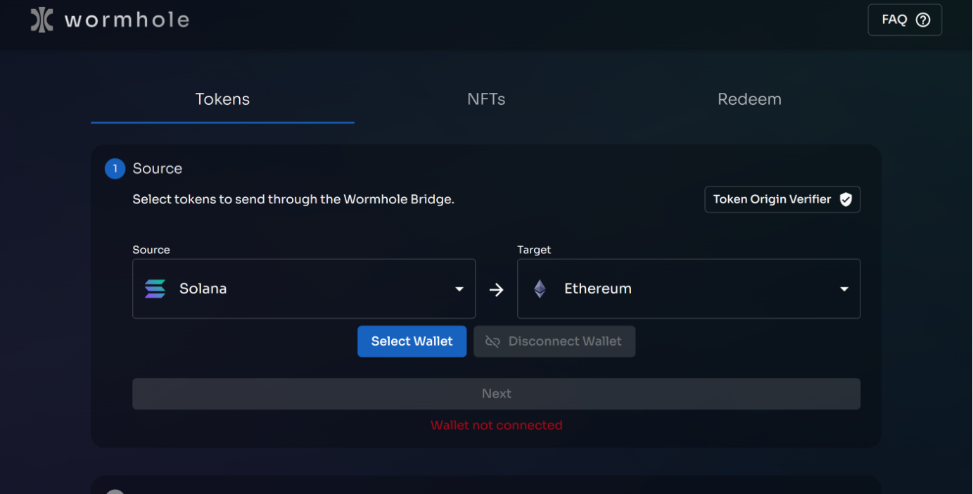 1. Wormhole是支持Avalanche,oasis,bsc,eth,polygon,sol,terra这几个链的跨链桥,交互是主网,不是测试币,请各位小伙伴注意