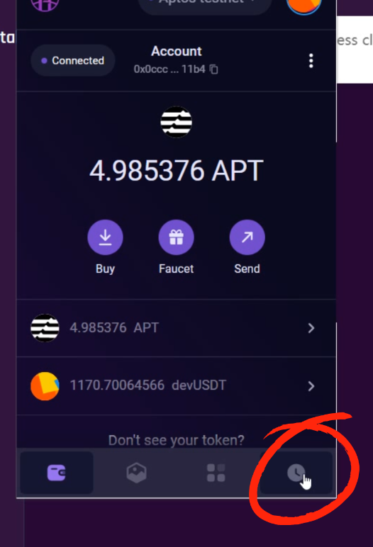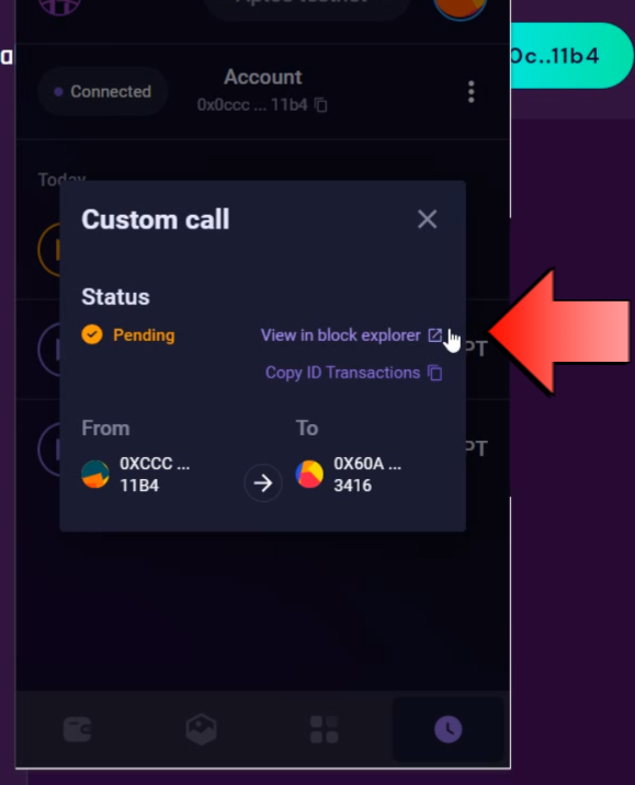 交易结束后,点击Pontem钱包,找到交易成功截图。