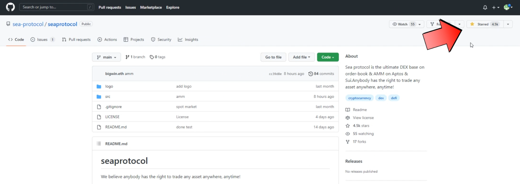 2. 在github网站上点亮关于Sea Protocol页面的星星