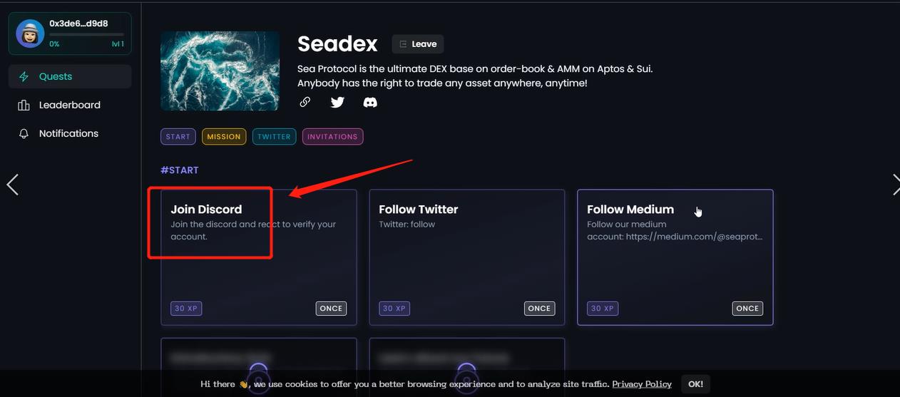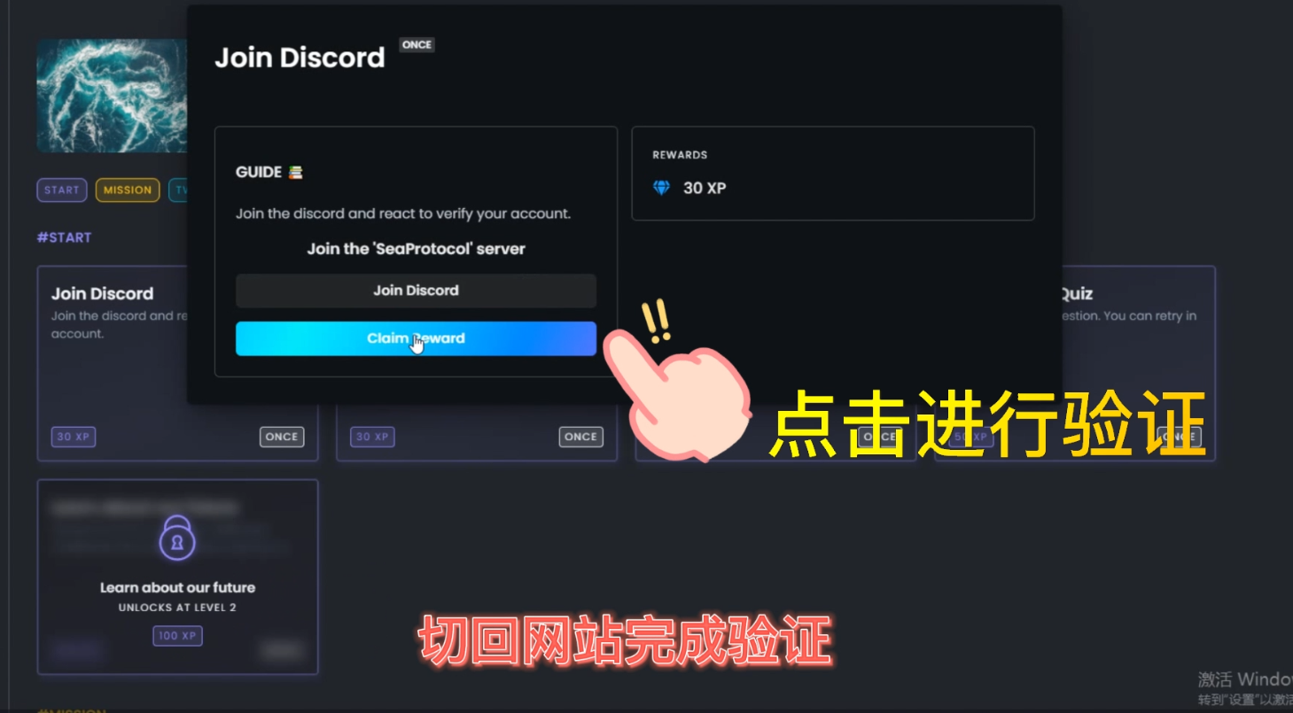 加入discord之后,切回网站进行验证,每完成一个子板块都需要进行验证。