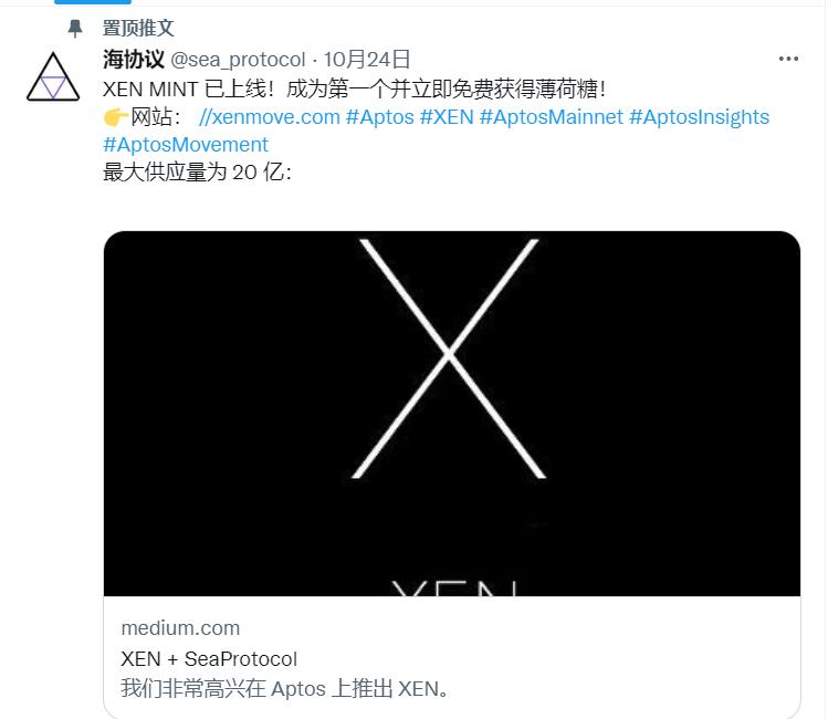 这个任务是在主网上完成的,参与XEN Token的铸币活动瓜分20亿项目代币,感兴趣的可以打开Sea protocol官方推特账号查看详情。
