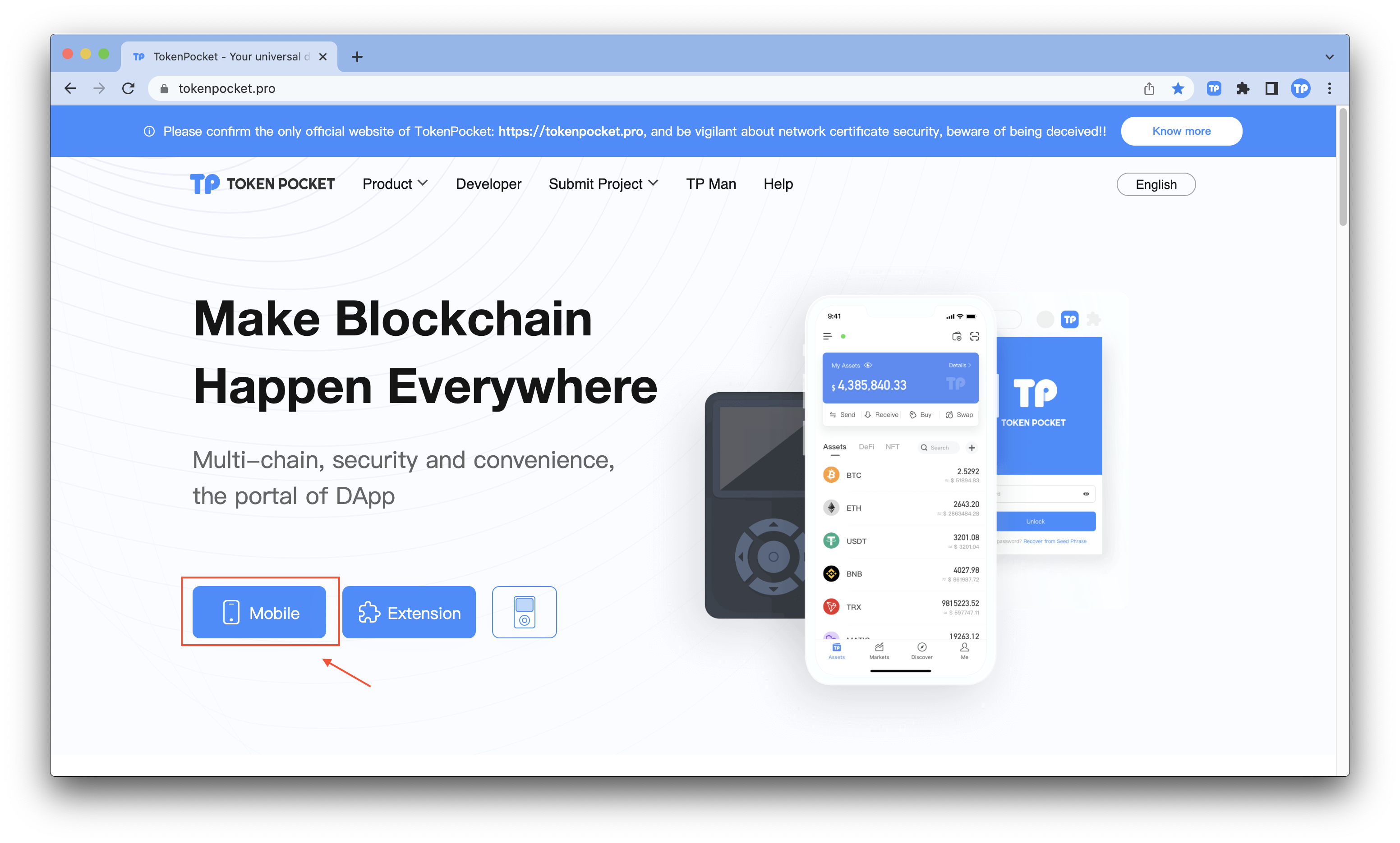 Attention: The only TokenPocket official website is https://tokenpocket.pro/.