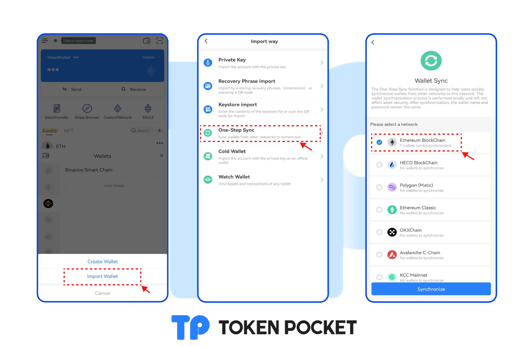Follow the below guide to create/import your wallet address first. > Click [Import Wallet] > Click [One-step Sync] > Choose the wallet you want to Sync.