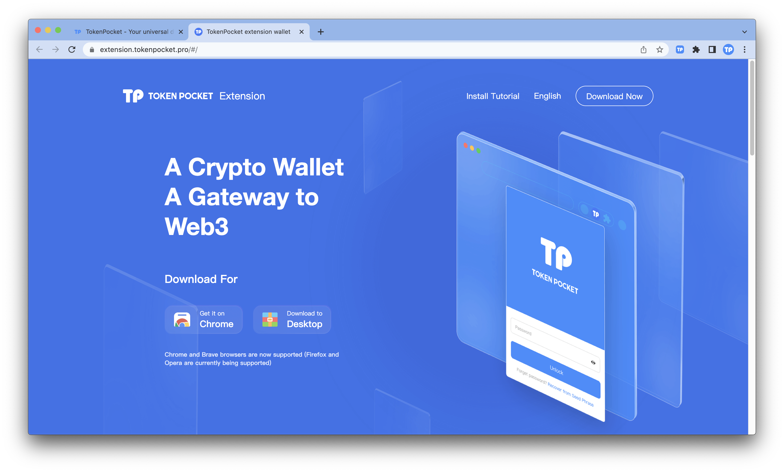 Add TokenPocket Extension Wallet to your Chrome. > Get it on Chrome
