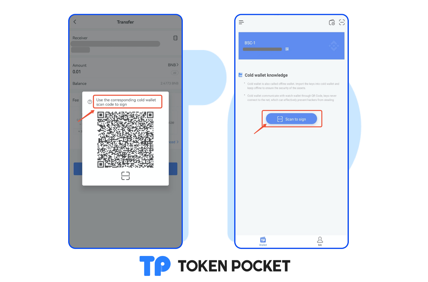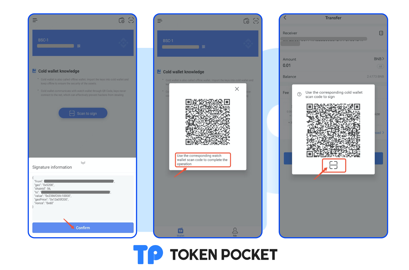 2. After you’ve confirmed the transaction introduction, the [Use the corresponding watch scan code to complete the operation] will pop up on the cold wallet page. Open the corresponding watch wallet and click the scanning button under the pop-up window to scan the QR code, and the transaction can be successfully sent.