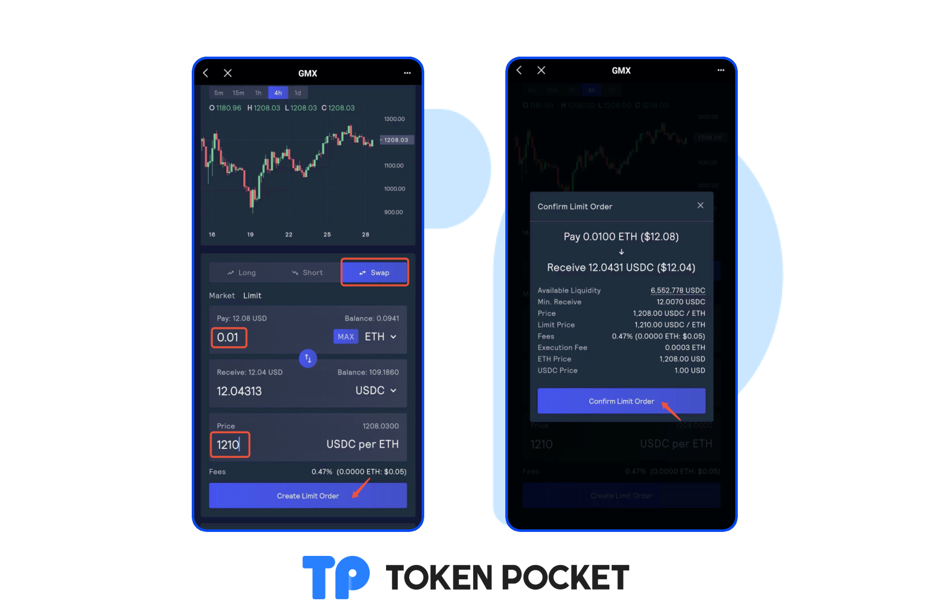 Click [Swap], enter the amount and price, click [Create Limit Order], and then click [Confirm Limit Order].