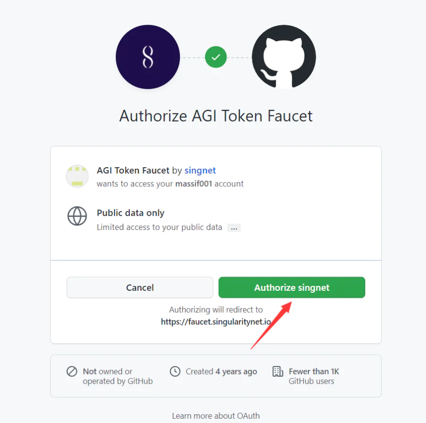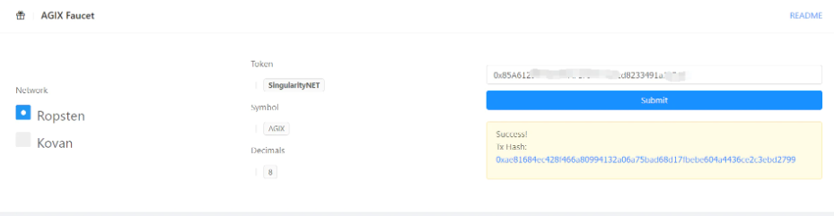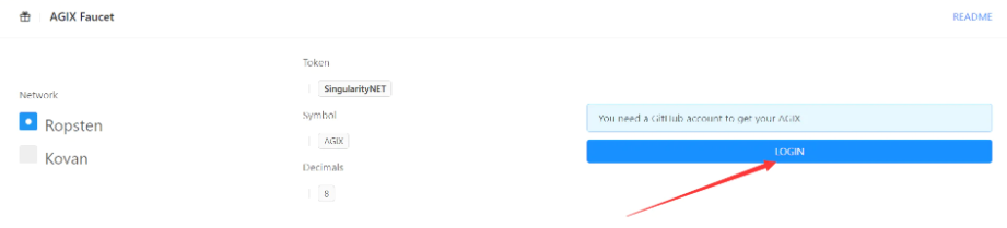 3.Receive a Ropsten AGIX token. Go to the URL and click on login to use GitHub login