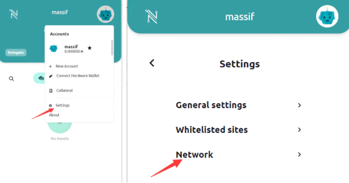 6.create a Nami wallet, switch the network to "Settings->Network" under the test network.