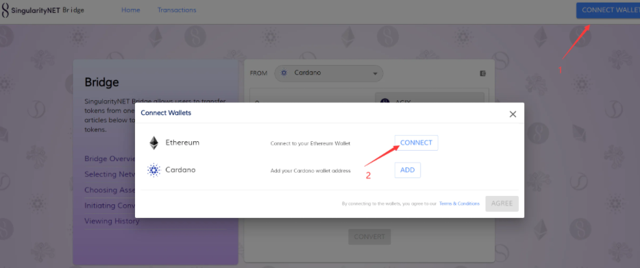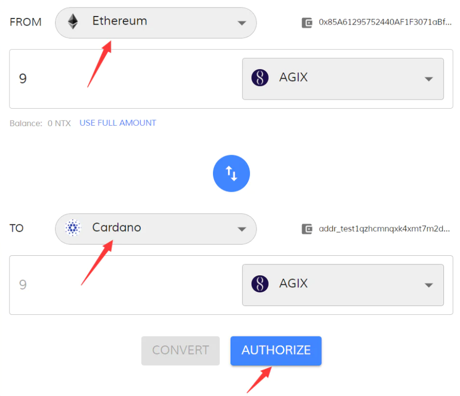 11.select from Ethernet to Cardano, enter the amount to be converted, and then click AUTHORIZE.