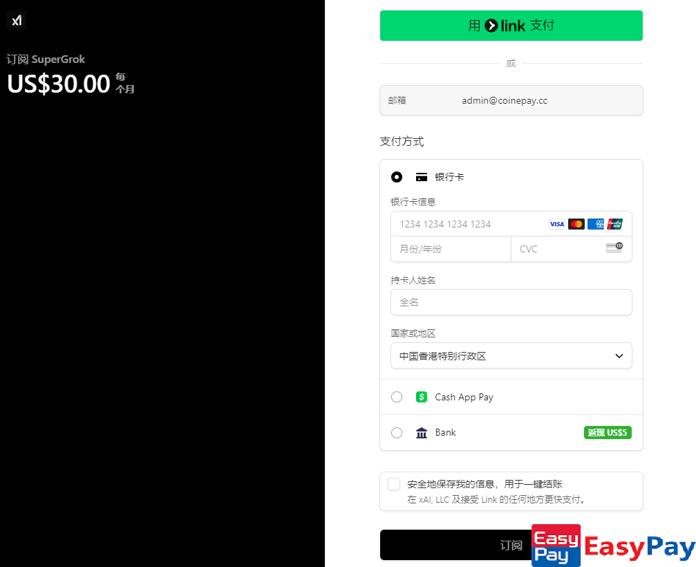 ✅ 虚拟信用卡 用于支付订阅(Visa/MasterCard) 推荐使用 EasyPay