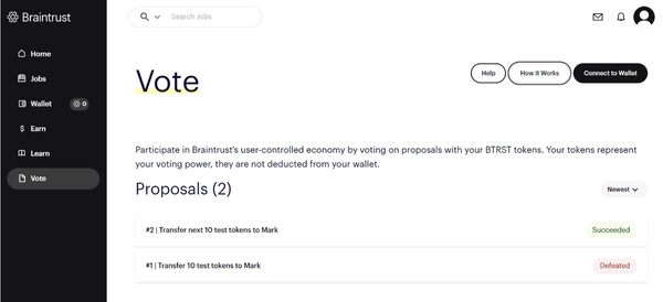 Braintrust 平台是 Braintrust 的主要和唯一枢纽,与网络相关的一切,从职位发布和推荐到质押和投票,都通过 Braintrust 平台运行。