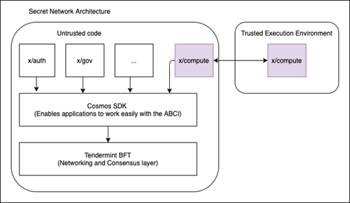 Secret Network是一个基于Cosmos SDK 构建,使用 Tendermint 来达成共识的Layer1层解决方案。其采用在计算机科学中常用的 TEE(Truested Execution Environment)来提供隐私交易功能。