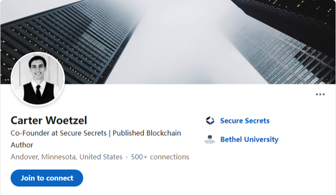 Carter Woetzel(Secret Foundation 社区负责人)是Secret网络灰皮书的作者(由Enigma协助),专注于市场营销和社区管理,重点是内容创作。此外,Carter是Shade Protocol(一个连接隐私保护的DeFi DApp)的首席研究员和经济学家,其中第一个产品是Silk(建立在Secret上的保护隐私的算法稳定币)。
