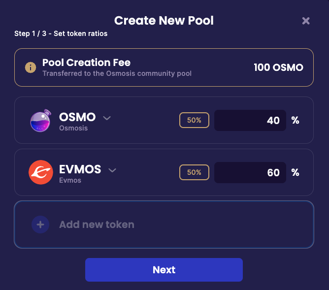 作为AMM,Osmosis最大的特色在于可以自由调节参数,创建定制化的流动性池。
