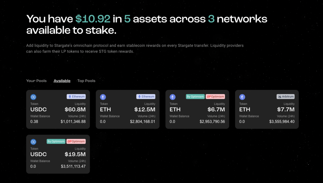Stargate是第一个完全基于LayerZero协议的项目,Stargate是多链单面稳定币曲线池。简单来说,假设用户从ETH → Avax交换USDC,用户可以让StarGate在一次交易中处理ETH USDC Eth池→ USDC Avax池,这使用户可以非常有效地进行交易。然而当USDC池偏离目标时,资金池套利者就会重新平衡USDC池。